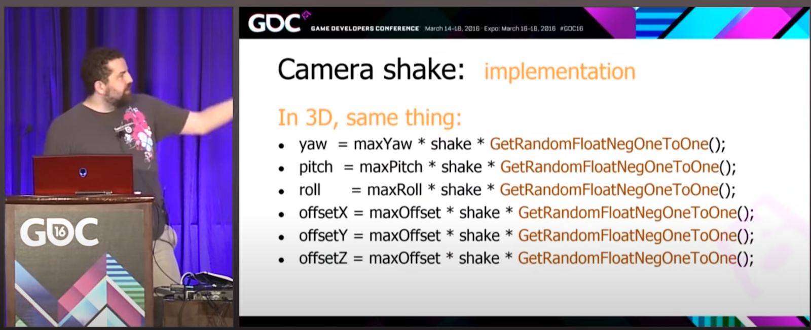 This realisation reminded me of a couple of talks I watched, called "The art of screenshake"